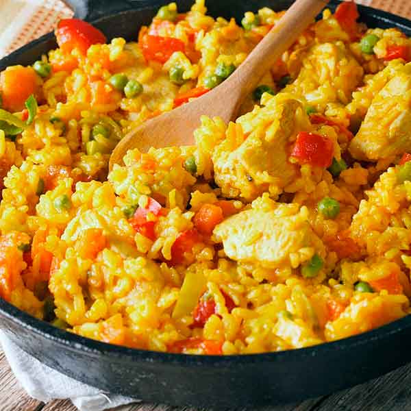 • Arroz con pollo o costillas al horno y sopa de fideos con pollo